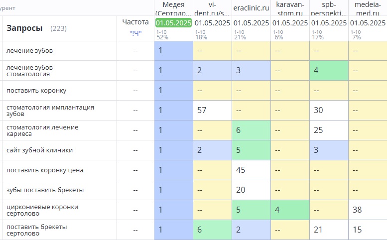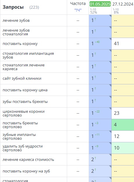 Рассказываем, как стоматологическая клиника в Сертолово выросла с 8% до 52% в ТОП-10 за 5 месяцев и получила отличную посещаемость из Яндекса и Google. Все это на нашем шаблоне без доработок – просто развернули и начали приносить трафик.